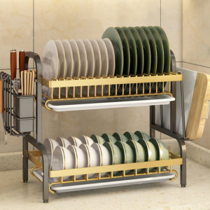 ធ្នើដាក់សម្ងួតចាន ខ្មៅឡាយមាស 3 ជាន់